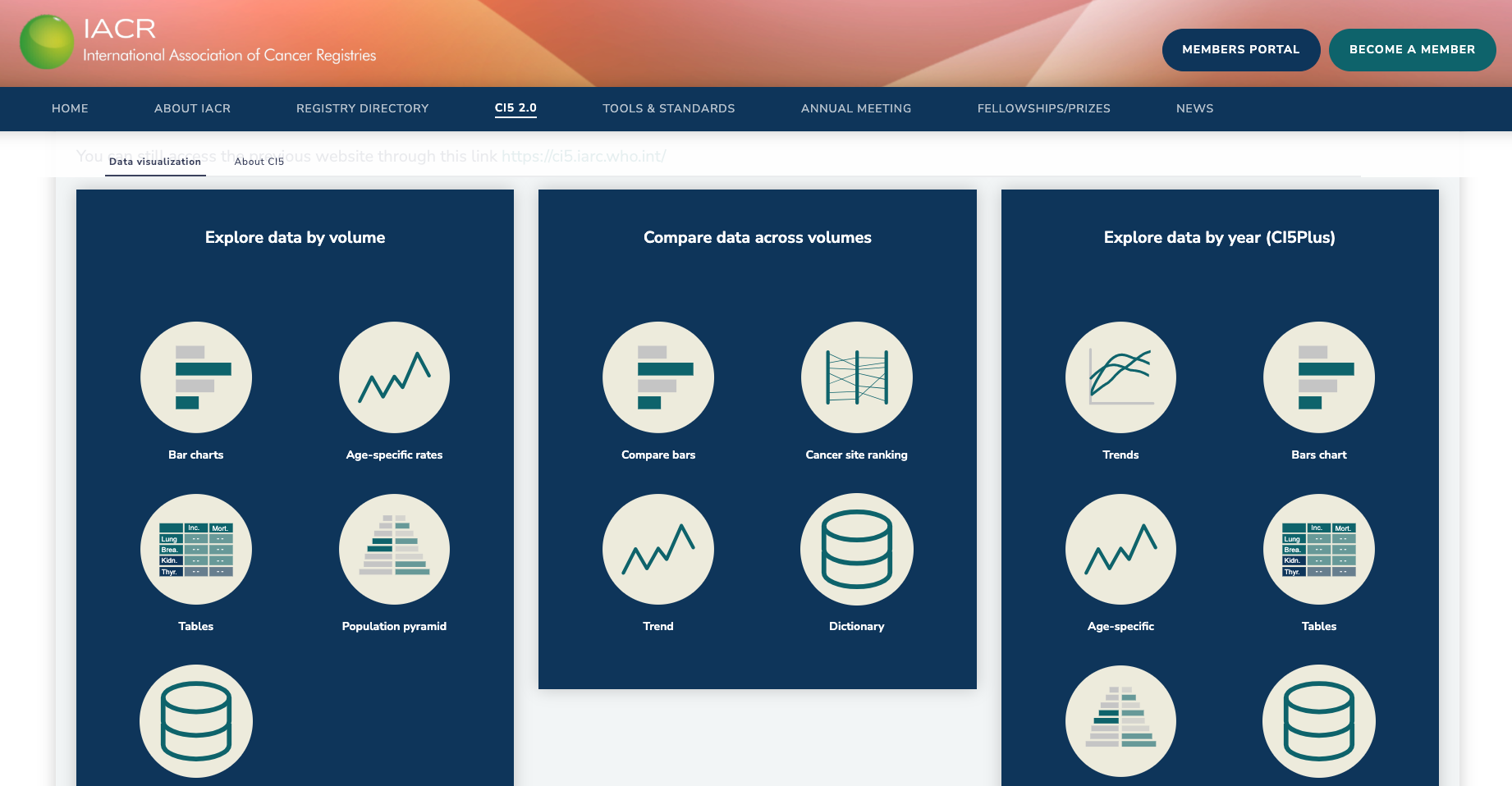 This website is being transitioned to a new repurposed IACR website which will have dedicated online tools (CI5++) for the geographic and temporal analysis of individual registry datasets included over the 12 volumes of CI5.